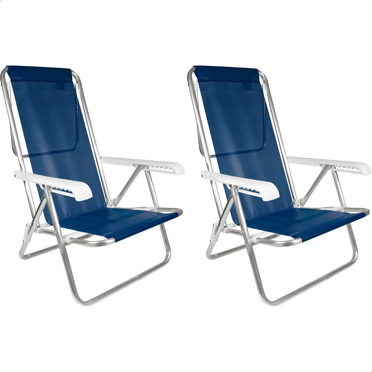 -55%Kit 2 Cadeira Praia Alumínio Reforçada 8 Posições Reclinável Cor Azul-marinho